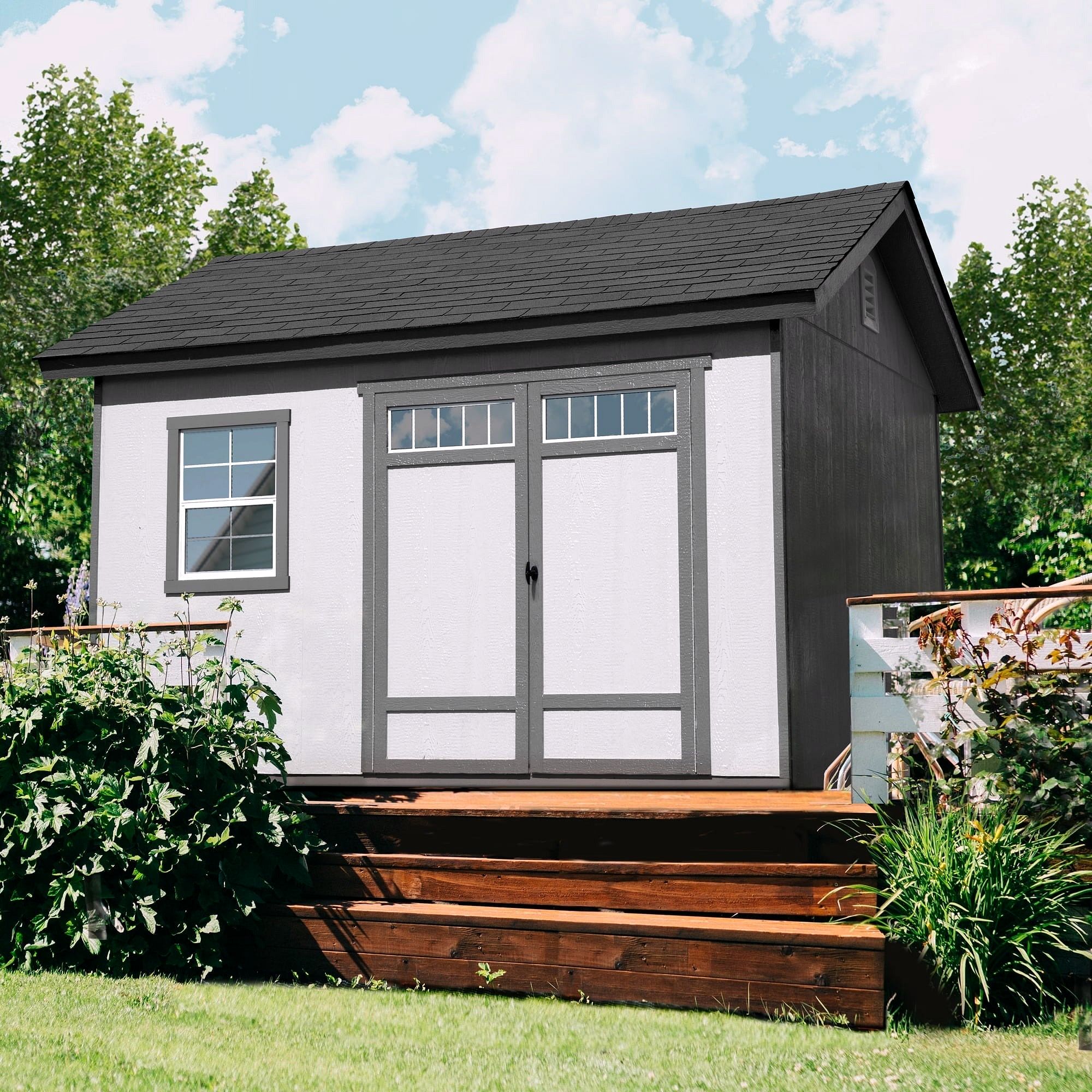 Abri de jardin en bois Beachwood 10 × 12 ft avec plancher – Grand espace de rangement extérieur