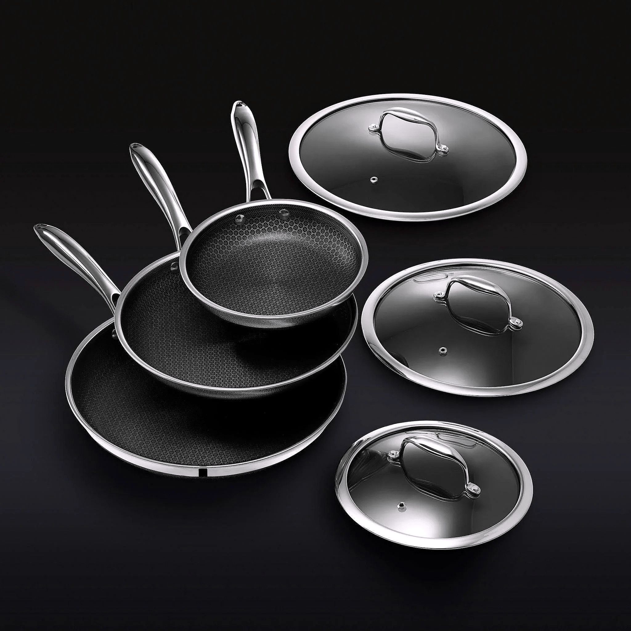 Set de casseroles en acier inoxydable 6 pièces avec couvercles en verre – Noir