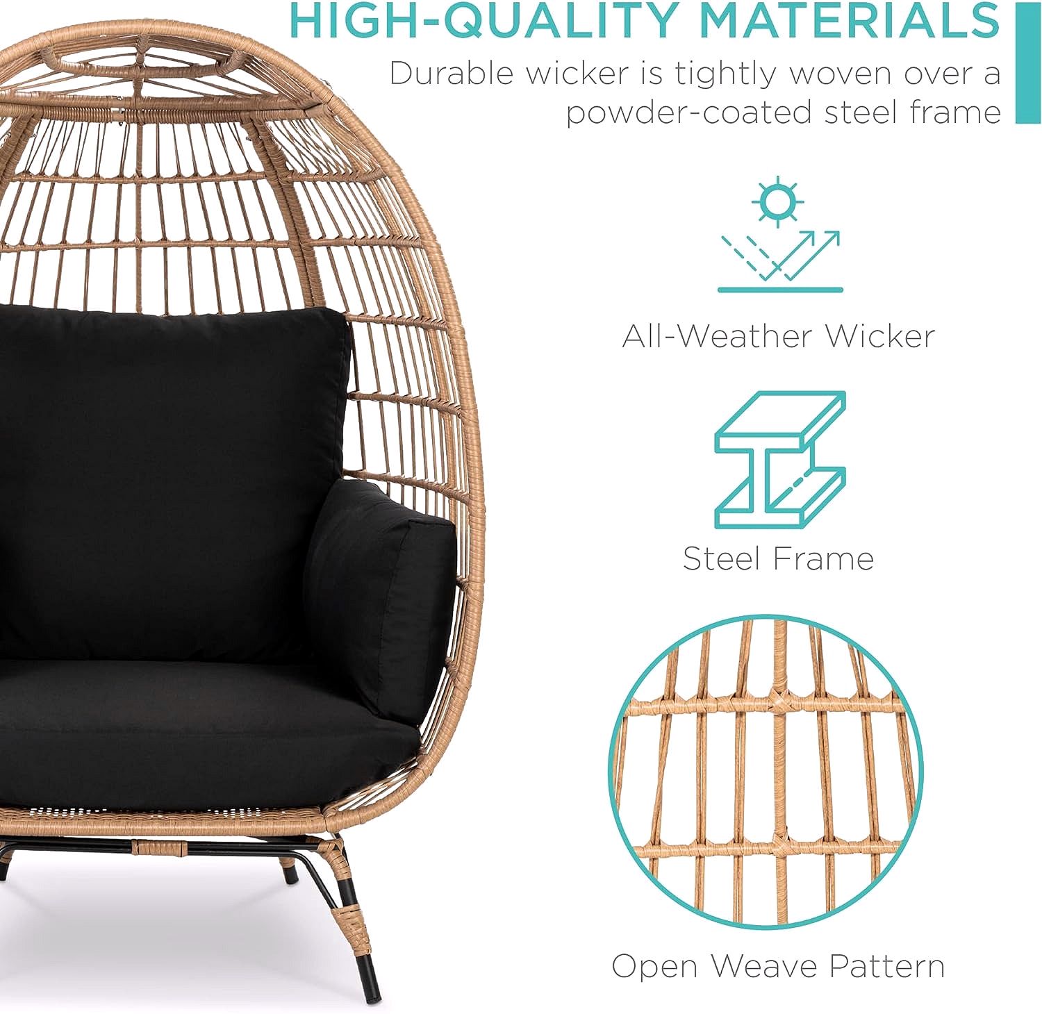 Chaise à œuf en rotin Best Choice Products – Chaise longue surdimensionnée pour l'intérieur et l'extérieur, idéale pour la terrasse, le jardin et le salon