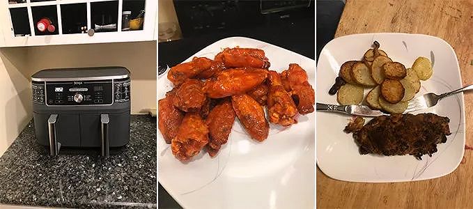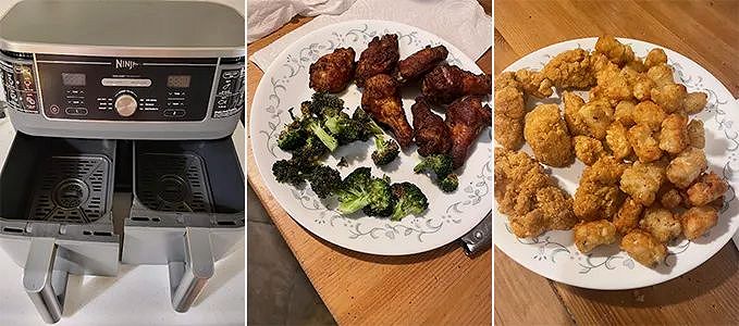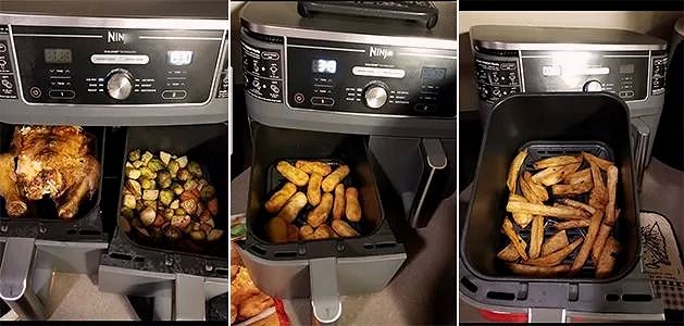 « Les paniers sont très grands, parfaits pour les frites, wings, pâtisseries et même le déshydratage. Un peu volumineuse, mais entièrement lavable au lave-vaisselle. Hautement recommandée. »